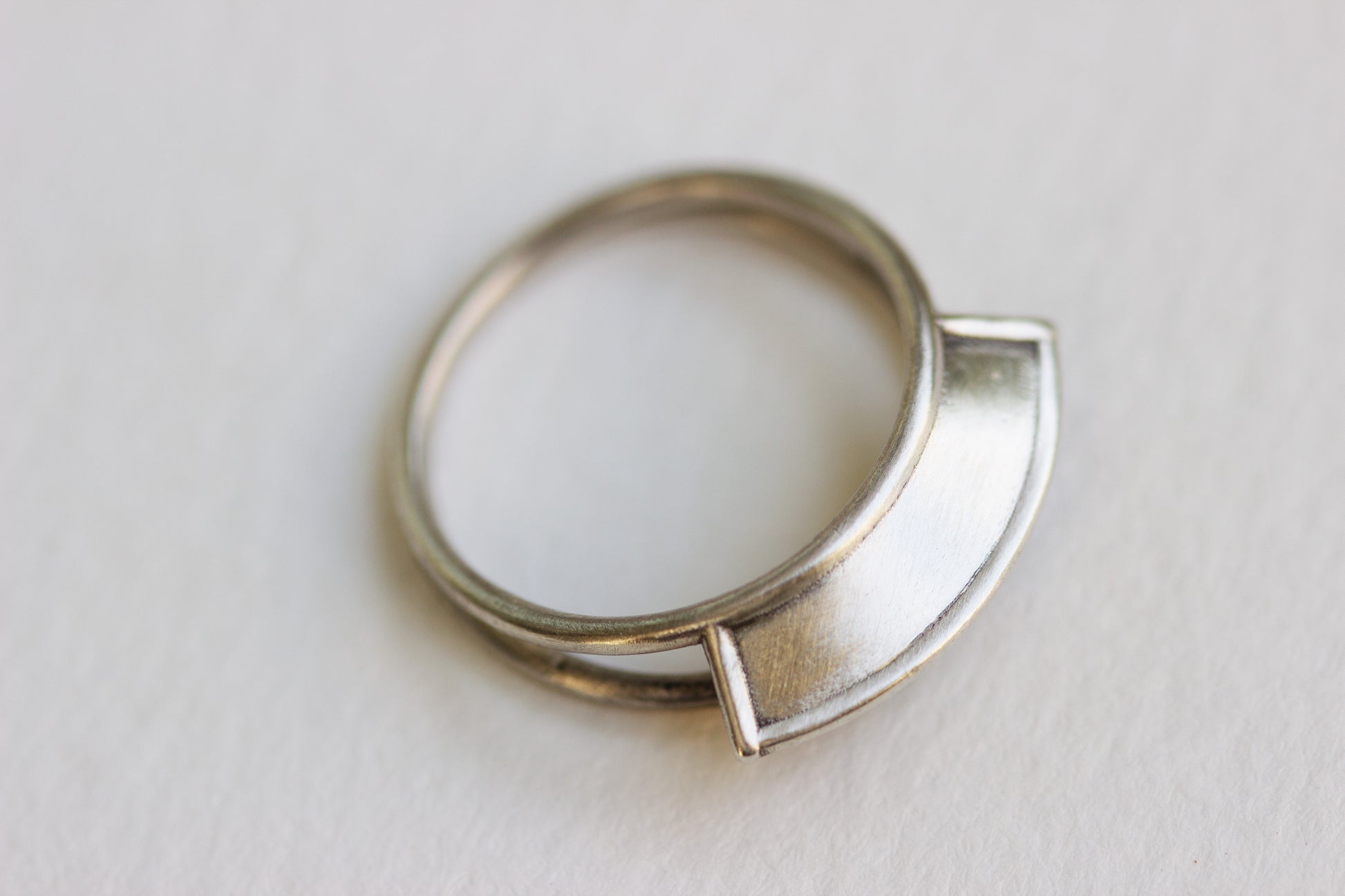 Embrace understated artistry with this Ground ring. Its open oval silhouette and attached flat segment create an intriguing interplay of positive and negative space, perfect for the modern wearer.
